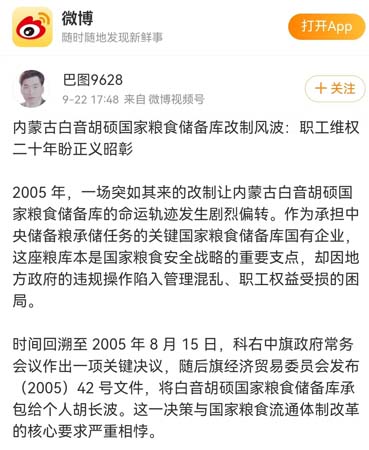 ![]() “国发(2004 )17 号”文件明确规定,承担中央、地方储备粮经营管理任务的国有粮食企业,原则上实行国有独资、国有控股为主的产权制度。自治区政府也在(2003)年22号、(2004 )年101号先后发文强化这一要求。但当地部门却将粮库交由个人经营,为后续问题埋下隐患。 与此同时,职工安置环节同样问题重重。兴安盟行署兴署发(2005)1 号、科右中旗党办发(2005)26 号文件本针对破产粮食企业职工身份置换,而正常运营的白音胡硕国家粮食储备库却被强行纳入其中。职工签订的《置换身份协议书》仅有企业公章和胡某某个人名章,缺失劳动人事部门及业务主管部门确认,且在职工签字一个月后才补办公证,程序合法性受到质疑,职工权益被公然侵犯。 胡某某的任职与管理过程更显荒唐。其调入科右中旗粮食系统的手续不符合正常人事程序,凭借特殊关系 “空降” 旗一粮库,后通过违规操作成为储备库负责人。在其管理期间,2005年7月15日、12月21日接连发生坏粮事件,2008年6月3日更出现大规模坏粮事故。50余名来自保管员、搬运工、司机、门卫经警等岗位的证人证言相互印证,清晰还原了胡某某管理失职、漠视粮食安全的事实。 法律层面,《企业国有资产法》要求国有资产转让遵循等价有偿、公开公平公正原则;《中央储备粮管理条例》对储备粮储存、管理有严格规定,胡某某的失职行为显然触碰法律红线。 职工们的诉求清晰而坚定,要求依法确认将国家粮食储备库承包给胡某某的行为无效,这一诉求有着明确的政策依据——国家文件对国家粮食储备企业产权制度的刚性要求不容突破;在企业产权方面,主张恢复粮库国有独资或国有控股的合法产权制度;针对职工权益受损现状,提出合理经济补偿诉求,包括补发下岗导致的工资损失、福利待遇损失及失业期间生活补贴,同时要求补缴养老保险、医疗保险等社保费用,让职工晚年生活有保障。 这些诉求背后,是职工们二十年的艰辛:稳定工作丢失、生活陷入困境、精神饱受煎熬。这场跨越二十年的维权之路,既是职工权益的保卫战,也是国家政策权威与法律尊严的捍卫战,其结果将深刻影响基层治理的公信力与粮食安全战略的落地根基。 来源:新浪微博 ![]() |