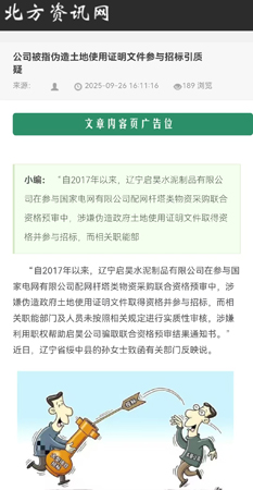 摘要:自2017年以来,辽宁启昊水泥制品有限公司在参与国家电网有限公司配网杆塔类物资采购联合资格预审中,涉嫌伪造政府土地使用证明文件取得资格并参与招标,而相关职能部门及人员未