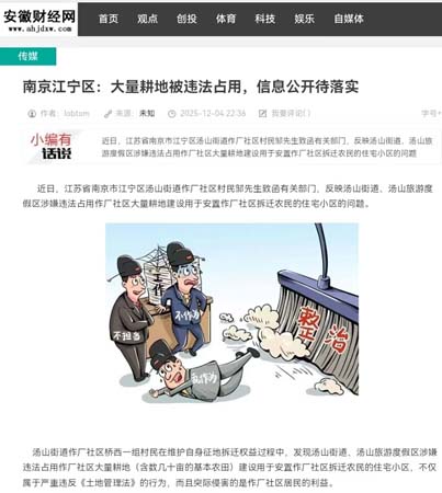 近日,江苏省南京市江宁区汤山街道作厂社区村民邹先生致函有关部门,反映汤山街道、汤山旅游度假区涉嫌违法占用作厂社区大量耕地建设用于安置作厂社区拆迁农民的住宅小区的问题。