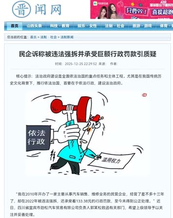 ![]() ![]() 十三年间,我从一个人、一个棚,做到有了稳定的客源,10余个员工,做成一个初具规模的汽车销售和维修一体小微企业。这里不只是我的生意,更是我全家老小安身立命的根基,是我全部心血和青春的见证。 ![]() 我相信法律,也相信程序,当月就以《限期搬离通知书》程序不合法,向翠屏区法院提起了诉讼。我认为,是非对错,应该等法院判决。可万万没想到诉讼途中,迎来了罚款与强拆,我提起的诉讼还没有开庭,没有结果的时候,2022年9月宜宾市自然资源和规划局对我下达了《行政处罚决定书》,认定我“非法占用国有土地”4446平方米,罚款133.38万元。 我提起诉讼,意味着这件事存在争议,正在走司法程序中,为何行政机关可以在法院未作出裁决前,就急于定性并施以巨额罚款。他们曾口头承诺“你搬了,我们就不处罚”,这是否意味着,处罚的目的不是为了纠正“非法占用”,而是为了逼我服从“搬离”的行政指令。法律难道是他们手中用来威胁我的工具吗? 然而,最残酷的一幕还在后面。2022年11月10日清晨6点左右,天还没亮,我正在厂里,西郊街道办事处组织近200人,开着挖掘机、大巴车甚至还有消防车、救护车到场护航。他们使用暴力手段切断电源、控制我和家人,破坏监控,强行威胁我员工将手机里所拍摄的视频删除,在短短的几个小时,将我十三年的心血强行夷为平地,扬长而去。 ![]() 其二,是法律还是挡箭牌?谁才是真正的“违法者”?我起诉后,强拆依然发生。街道办主任胡某某甚至在媒体前说:“我们在做这个事情的时候,我们认为我们不违法。”如果行政机关可以凭“自我认为”就无视公民正在进行的司法救济,那法院的意义何在?法律的尊严何在? 土地如果是非法占用,源头在出租行为。出租方(农户)长期出租获利,土地管理部门多年来对这片土地的权属和管理状态知情吗?如果知情不究,是失职;如果不知情,是失察。现在却把板子全部打在我这个支付十三年租金、以为自己在合法经营的终端租户上。这就像有人卖了假冒产品,最后只抓买来使用的消费者,而放过了生产者和销售者,逻辑完全颠倒。 而且,整个片区,类似租地经营商户不止我一家,为什么强拆的挖掘机只开进我的院子?为什么百万元罚单只开给我?国土资源和规划局执法大队负责人谢某某说是因为“接到了移交线索”。这无法说服我。“选择性执法”比普遍违法更可怕,因为它意味着执法不是基于规则,而是基于某种随意的甚至是不公的意志。 今年3月,我把两个出租人起诉到法院,心想承租人把国有土地出租给我,是他们的责任,让他们退还租金,赔偿我因他们使用国有土地出租给我造成的的损失。没想到法院竟然判决合同无效,租金不退、赔偿不赔,说我已经使用了土地这么多年,不应该退还租金,应由行政部门处理,法院不作评判。这于情于理于法让我感到难以理解和接受。 ![]() 公平正义,国之基址。我的诉求,一是依法追究违法强拆的责任。法院判决已定,是否应依法对西郊街道办事处及相关责任人的违法行为进行问责,而不只是止于“确认违法”四字?二是撤销错误的行政处罚。宜宾市自然资源和规划局的罚款,对象错误、选择性执法、程序存凝。应撤销对我的处罚,并依法追究违法出租土地一方的责任;三是进行合理的国家赔偿。对我被违法强拆所造成的全部直接与间接损失进行评估和赔偿,这是我作为公民的法定权利;四是给出一个系统性的交代。请上级部门彻查:这片土地的权属管理为何如此混乱?“选择性执法”的根源是什么?如何防止“拆后即租”的荒诞剧再次上演?维护国家法律权威和社会公平正义。 来源:晋闻网 ![]() |