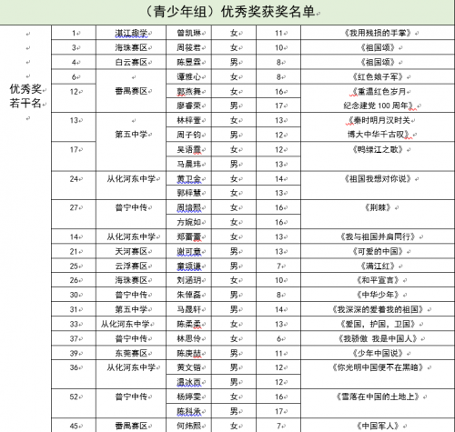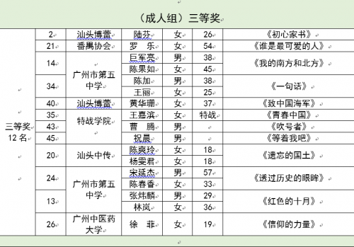 获奖名单:
