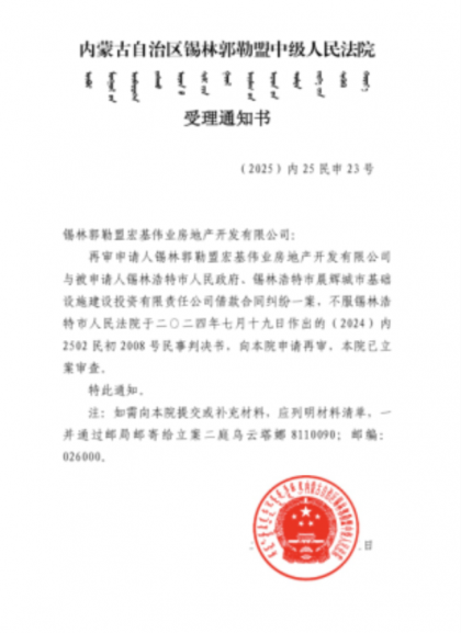 事件回溯:贷款“绕开”开发商 据宏基伟业介绍,2015—2019年间,锡林浩特市晨辉城市基础设施建设投资有限责任公司(下称“晨辉城投”)以“锡市楚办扎斯嘎图社区(明珠小区)棚改项目”名义,分六笔将合计6300万元贷款拨付至正蓝旗恒峰建筑工程有限公司(下称“恒峰建筑”)。宏基伟业称,公司账面从未收到该款项,亦未将其计入项目成本。 2024年,晨辉城投起诉宏基伟业要求归还6300万元及利息。锡林浩特市人民法院作出(2024)内2502民初2008号民事判决,支持了晨辉城投的还款请求。宏基伟业表示,直到诉讼阶段才获悉资金已流向恒峰建筑,且恒峰建筑并非明珠小区实际施工单位。